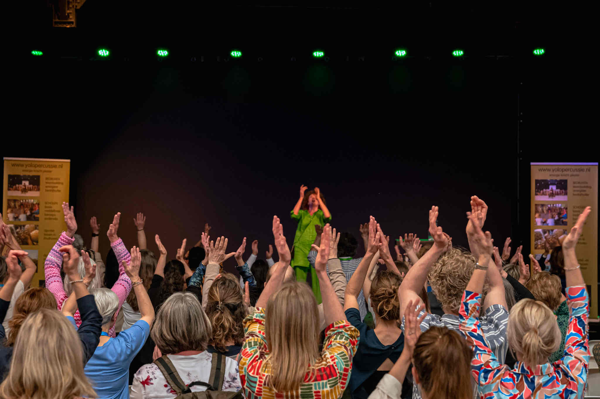 Het mooie van een bodypercussie workshop zit hem in de snelheid waarmee je een grote groep mensen in korte tijd een dosis energie geeft. Geen gesjouw met tafels of stoelen, trommels klaarzetten en ruimte maken. Het enige wat ik vraag is: sta op, en alle neuzen dezelfde kant op en we kunnen starten.